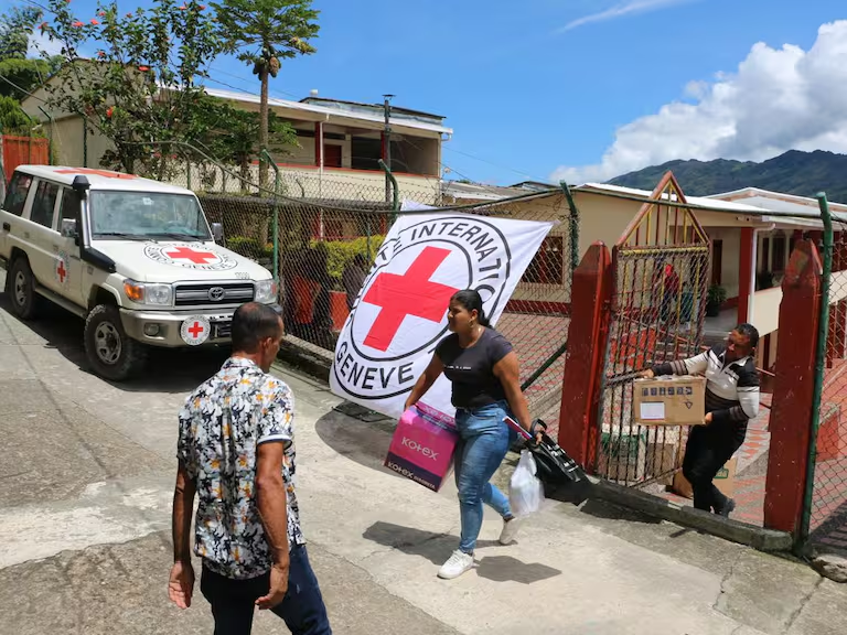 Estas ayudas se entregaron a los más de dos mil desplazados que permanecen en la zona urbana de este municipio del Norte de Antioquia, por el enfrentamiento entre grupos armados ilegales. https://caracol.com.co/2025/10/27/comite-internacional-de-la-cruz-roja-entrego-kits-de-aseo-a-los-desplazados-de-briceno-antioquia